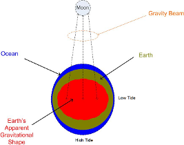But wait, if the light from 13 Billion light years away is red shifted by the DMA, that means the red shift of those objects is not the result of them moving away from us. Therefore, the universe is not really expanding at all. So much for the Big Bang Theory. So now we should look at gravity as a beam in stead of a well. I mean you could work out the math as if it were a well. The gravity beam just seems more logical. The earth/moon gravity beam cancels the earth's gravity a bit through the plane and creates the tides on both sides of the earth as the moon orbits around the planet. This creates High Tides every 12 hours. If gravity were a well, there would only be a high tide every 24 hours on the moon side of the planet. But, the moons gravity cancels the earth's a bit allowing the ocean to float more towards space.